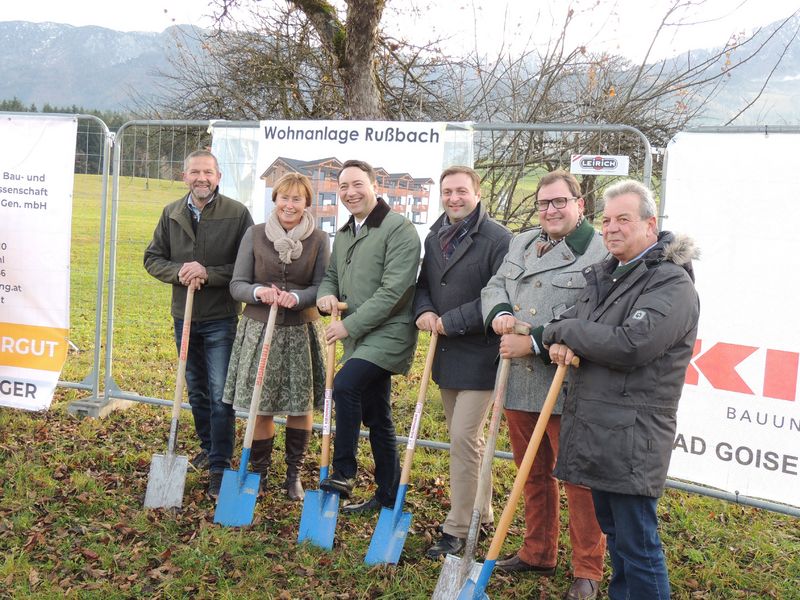 Der Spatenstich für die Errichtung von 12 Mietwohnungen in der Ortschaft Rußbach/ St. Wolfgang konnte in der Vorwoche im Beisein von Wohnbau-Landesrat LH-Stv. Dr. Manfred Haimbuchner vorgenommen werden. Im Frühling 2021 sollen die Wohnungen dann an die zukünftigen Bewohner übergeben werden.